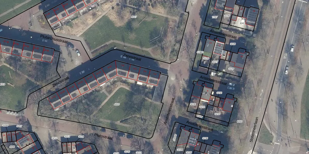 Zenostraat 1 is gelegen op kadastraal perceel STN02D4320. Deze kadastrale aanduiding is uniek en wordt gebruikt door het Kadaster om eigendomsrechten en andere zakelijke rechten vast te leggen. Het perceel maakt onderdeel uit van de kadastrale gemeente Sloten Noord-Holland.