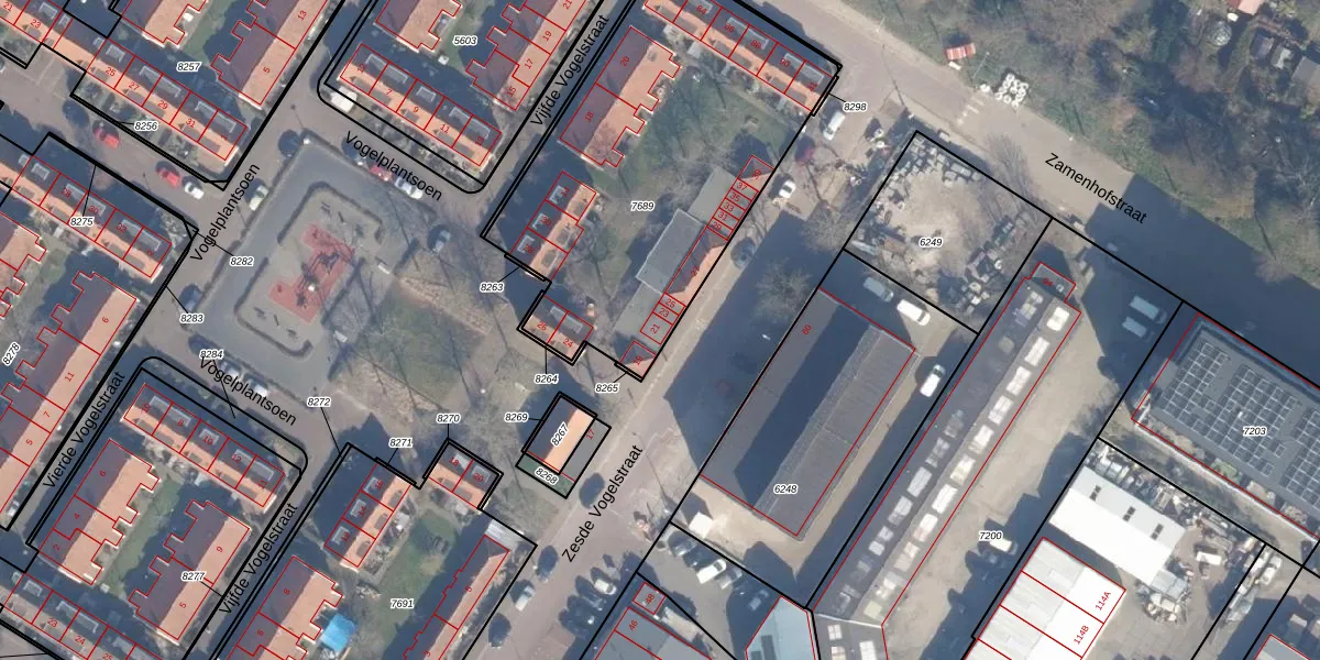 Het perceel waarop Zesde Vogelstraat 21 staat heeft een oppervlakte van 1757 m². Dit is een zeer groot perceel. De perceeloppervlakte wordt geregistreerd door het Kadaster. Gedetailleerde informatie over de maten van dit perceel kunt u vinden in het rapport Kadastrale kaart met maatvoering van Zesde Vogelstraat 21.