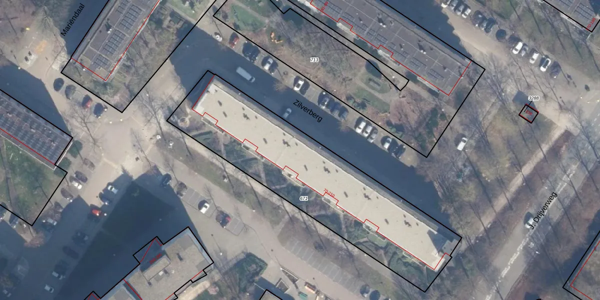 Het perceel waarop Zilverberg 92 staat heeft een oppervlakte van 2255 m². Dit is een zeer groot perceel. De perceeloppervlakte wordt geregistreerd door het Kadaster. Gedetailleerde informatie over de maten van dit perceel kunt u vinden in het rapport Kadastrale kaart met maatvoering van Zilverberg 92.