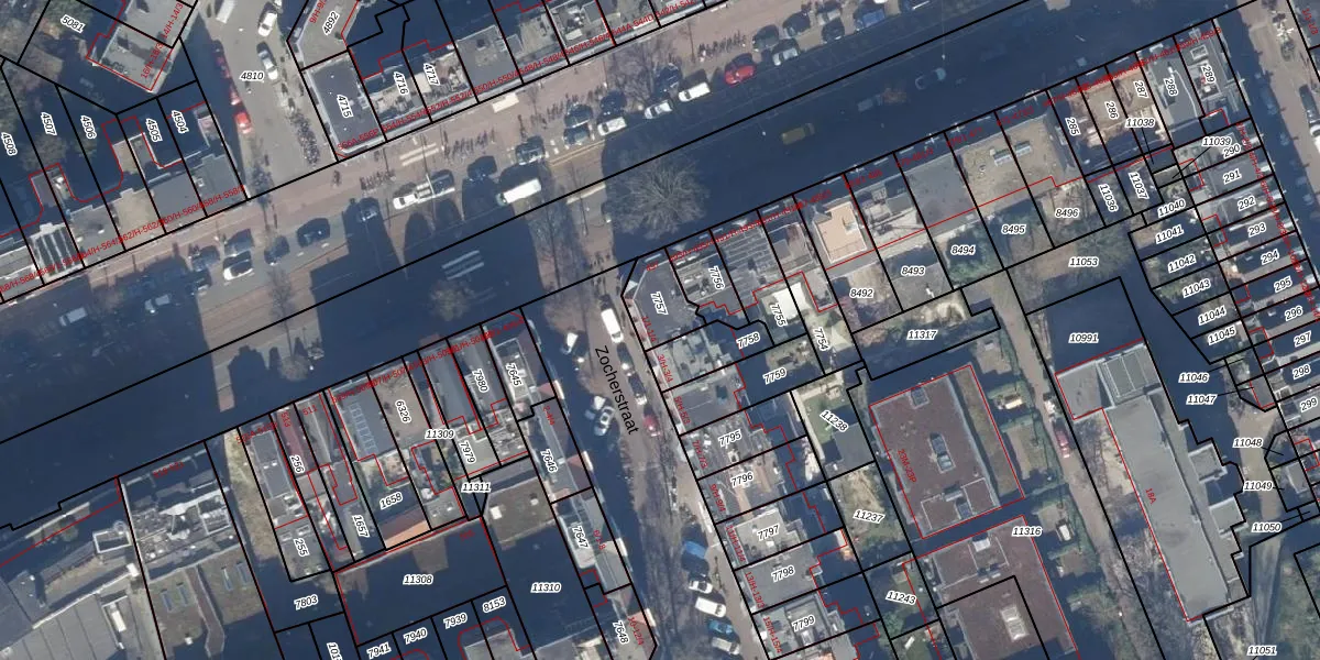 Zocherstraat 1-1 is gelegen op kadastraal perceel ASD17U7757. Deze kadastrale aanduiding is uniek en wordt gebruikt door het Kadaster om eigendomsrechten en andere zakelijke rechten vast te leggen. Het perceel maakt onderdeel uit van de kadastrale gemeente Amsterdam.
