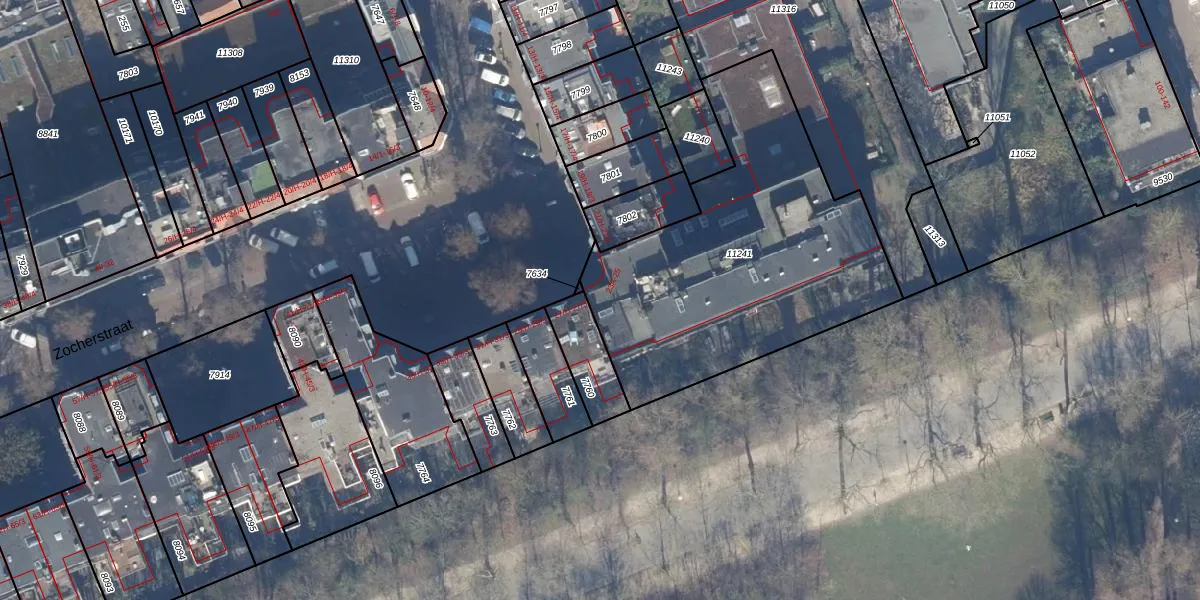 Het perceel waarop Zocherstraat 25 staat heeft een oppervlakte van 1555 m². Dit is een zeer groot perceel. De perceeloppervlakte wordt geregistreerd door het Kadaster. Gedetailleerde informatie over de maten van dit perceel kunt u vinden in het rapport Kadastrale kaart met maatvoering van Zocherstraat 25.