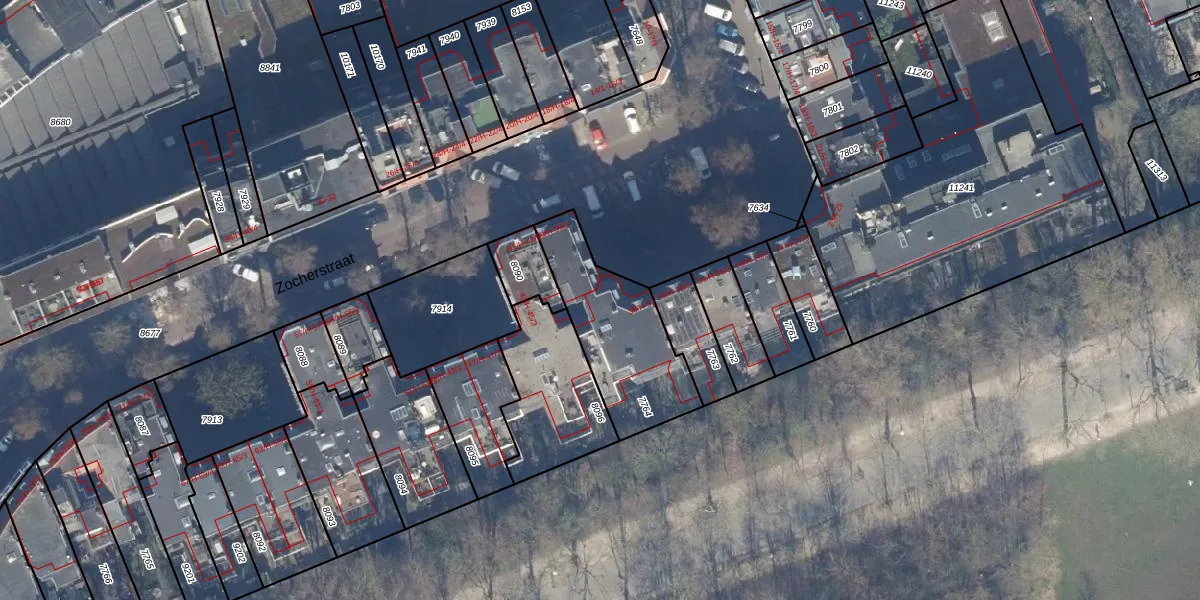 Het perceel waarop Zocherstraat 37 staat heeft een oppervlakte van 455 m². Dit is een groot perceel. De perceeloppervlakte wordt geregistreerd door het Kadaster. Gedetailleerde informatie over de maten van dit perceel kunt u vinden in het rapport Kadastrale kaart met maatvoering van Zocherstraat 37.