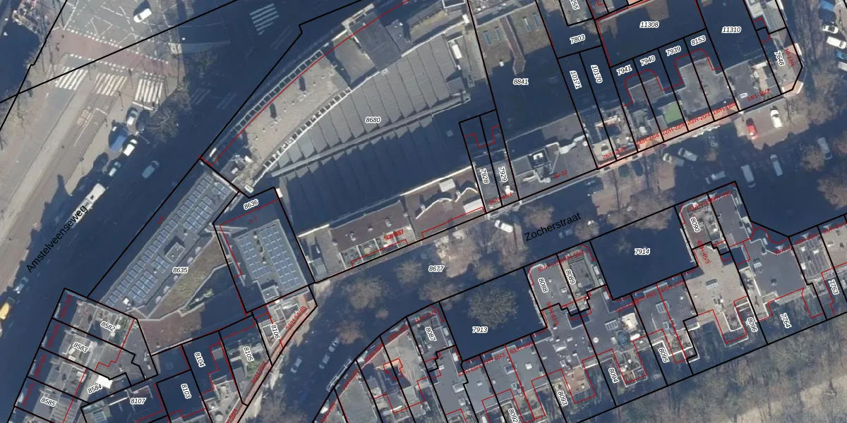 Het perceel waarop Zocherstraat 50-A staat heeft een oppervlakte van 3094 m². Dit is een zeer groot perceel. De perceeloppervlakte wordt geregistreerd door het Kadaster. Gedetailleerde informatie over de maten van dit perceel kunt u vinden in het rapport Kadastrale kaart met maatvoering van Zocherstraat 50-A.