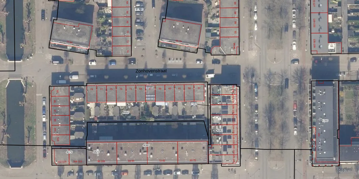 Het perceel waarop Zonhovenstraat 61 staat heeft een oppervlakte van 2185 m². Dit is een zeer groot perceel. De perceeloppervlakte wordt geregistreerd door het Kadaster. Gedetailleerde informatie over de maten van dit perceel kunt u vinden in het rapport Kadastrale kaart met maatvoering van Zonhovenstraat 61.