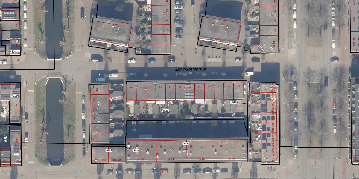 Het perceel waarop Zonhovenstraat 69 staat heeft een oppervlakte van 2185 m². Dit is een zeer groot perceel. De perceeloppervlakte wordt geregistreerd door het Kadaster. Gedetailleerde informatie over de maten van dit perceel kunt u vinden in het rapport Kadastrale kaart met maatvoering van Zonhovenstraat 69.