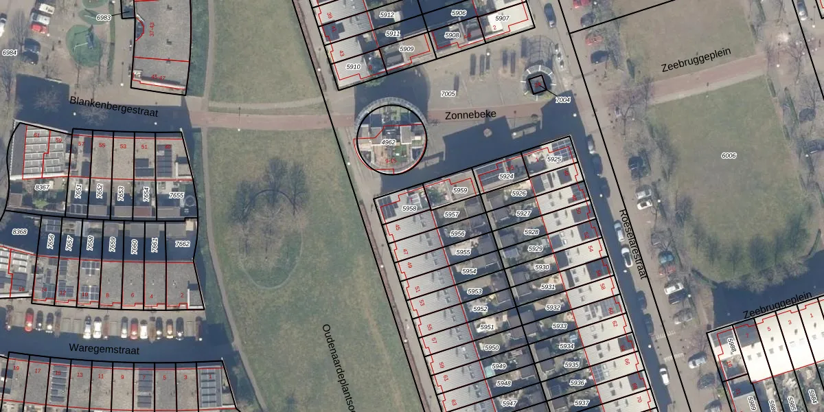 Het perceel waarop Zonnebeke 7 staat heeft een oppervlakte van 82 m². Dit is een klein perceel. De perceeloppervlakte wordt geregistreerd door het Kadaster. Gedetailleerde informatie over de maten van dit perceel kunt u vinden in het rapport Kadastrale kaart met maatvoering van Zonnebeke 7.