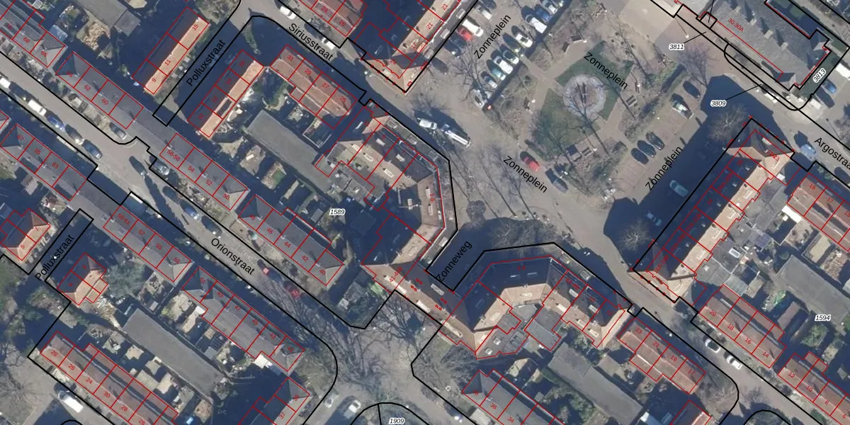 Het perceel waarop Zonneplein 1 staat heeft een oppervlakte van 1,2 ha. Dit is een zeer groot perceel. De perceeloppervlakte wordt geregistreerd door het Kadaster. Gedetailleerde informatie over de maten van dit perceel kunt u vinden in het rapport Kadastrale kaart met maatvoering van Zonneplein 1.
