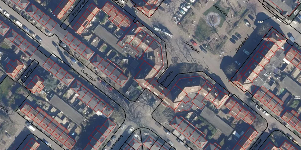 Het perceel waarop Zonneweg 45 staat heeft een oppervlakte van 1,2 ha. Dit is een zeer groot perceel. De perceeloppervlakte wordt geregistreerd door het Kadaster. Gedetailleerde informatie over de maten van dit perceel kunt u vinden in het rapport Kadastrale kaart met maatvoering van Zonneweg 45.