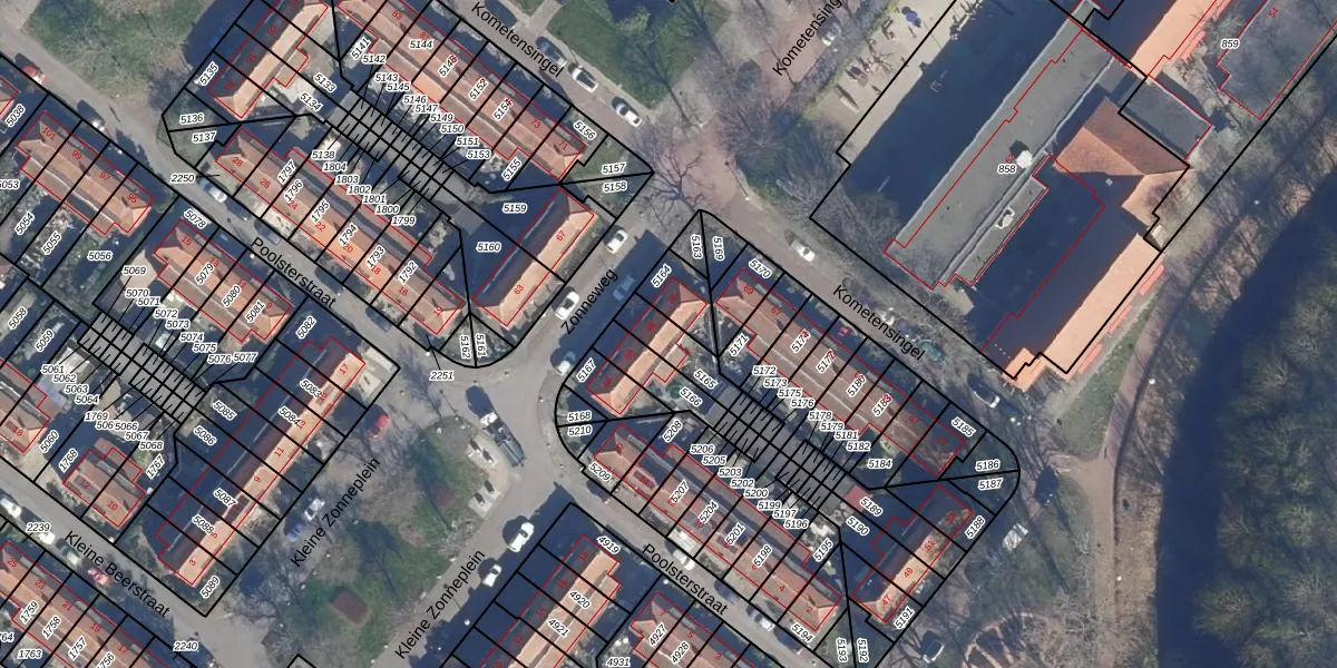 Gebruik de zoekbalk of klik op een perceel voor informatie over de adressen binnen dit perceel.