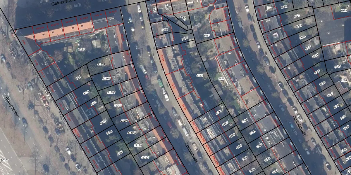 Het perceel waarop Zoomstraat 25-2 staat heeft een oppervlakte van 956 m². Dit is een groot perceel. De perceeloppervlakte wordt geregistreerd door het Kadaster. Gedetailleerde informatie over de maten van dit perceel kunt u vinden in het rapport Kadastrale kaart met maatvoering van Zoomstraat 25-2.
