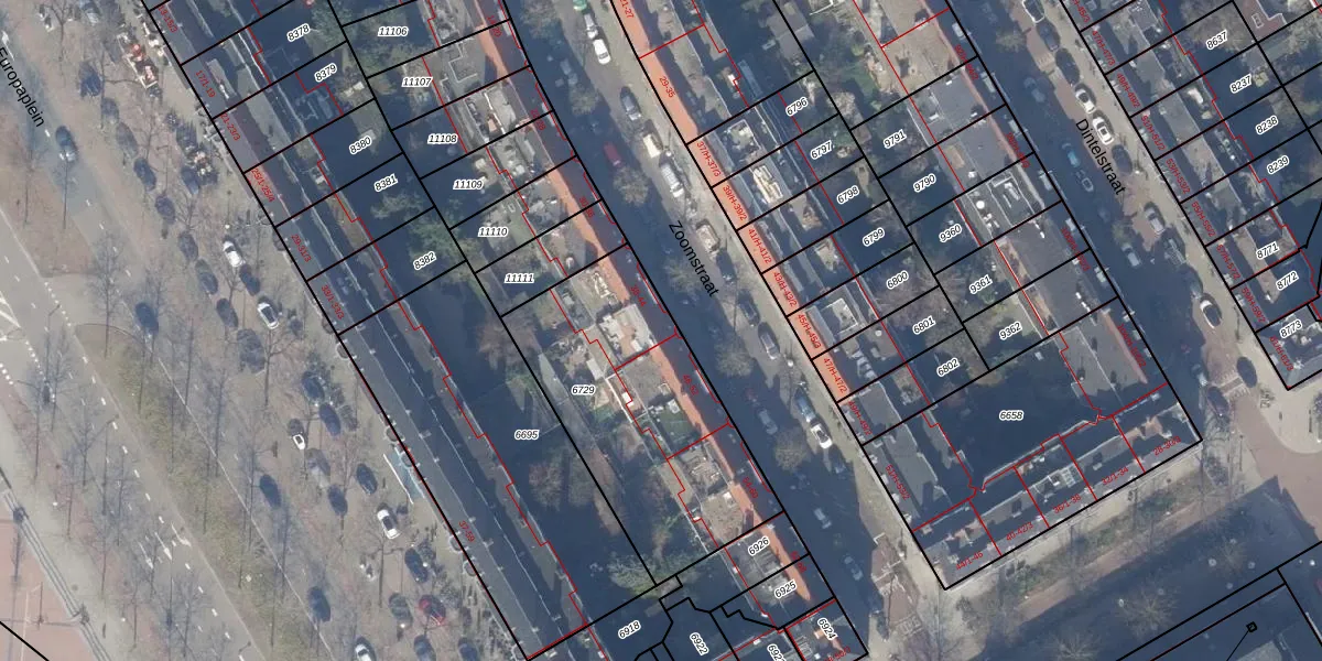 Zoomstraat 44 is gelegen op kadastraal perceel ASD18V6729. Deze kadastrale aanduiding is uniek en wordt gebruikt door het Kadaster om eigendomsrechten en andere zakelijke rechten vast te leggen. Het perceel maakt onderdeel uit van de kadastrale gemeente Amsterdam.