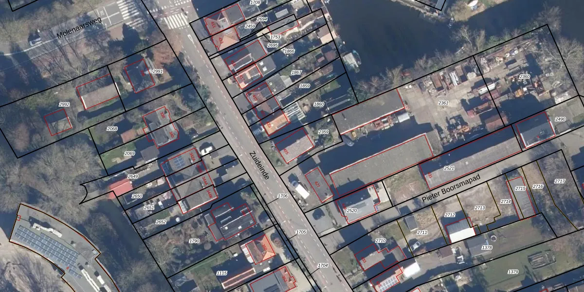 Gebruik de zoekbalk of klik op een perceel voor informatie over de adressen binnen dit perceel.