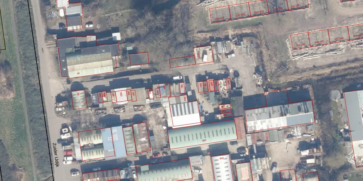 Het perceel waarop Zuider IJdijk 38-L staat heeft een oppervlakte van 20,4 ha. Dit is een zeer groot perceel. De perceeloppervlakte wordt geregistreerd door het Kadaster. Gedetailleerde informatie over de maten van dit perceel kunt u vinden in het rapport Kadastrale kaart met maatvoering van Zuider IJdijk 38-L.