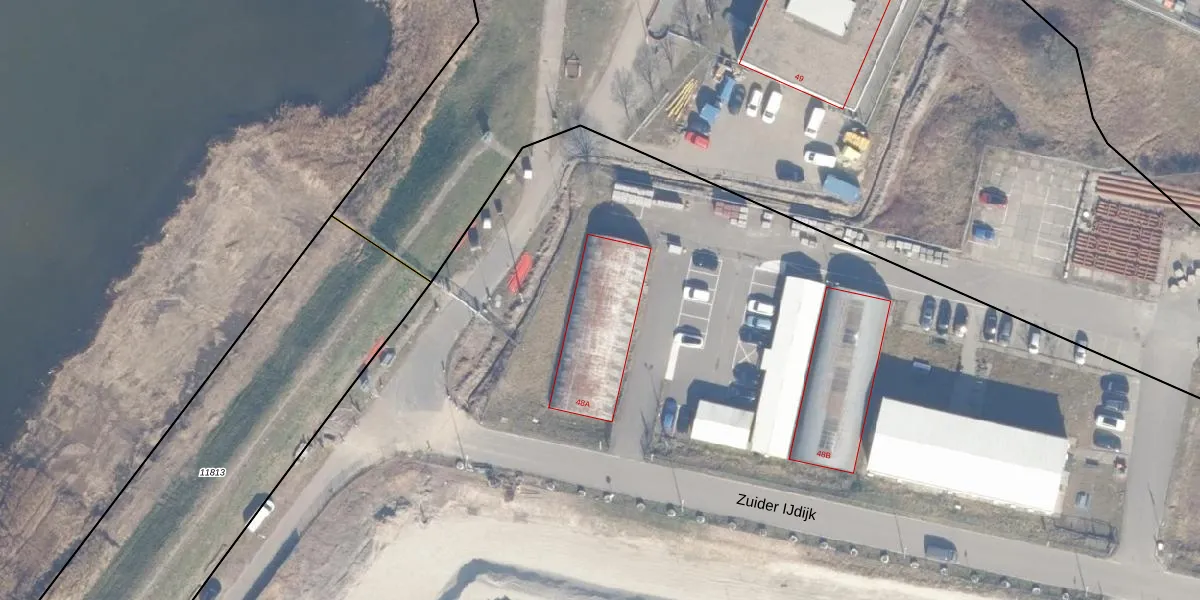 Het perceel waarop Zuider IJdijk 48-A staat heeft een oppervlakte van 26,5 ha. Dit is een zeer groot perceel. De perceeloppervlakte wordt geregistreerd door het Kadaster. Gedetailleerde informatie over de maten van dit perceel kunt u vinden in het rapport Kadastrale kaart met maatvoering van Zuider IJdijk 48-A.