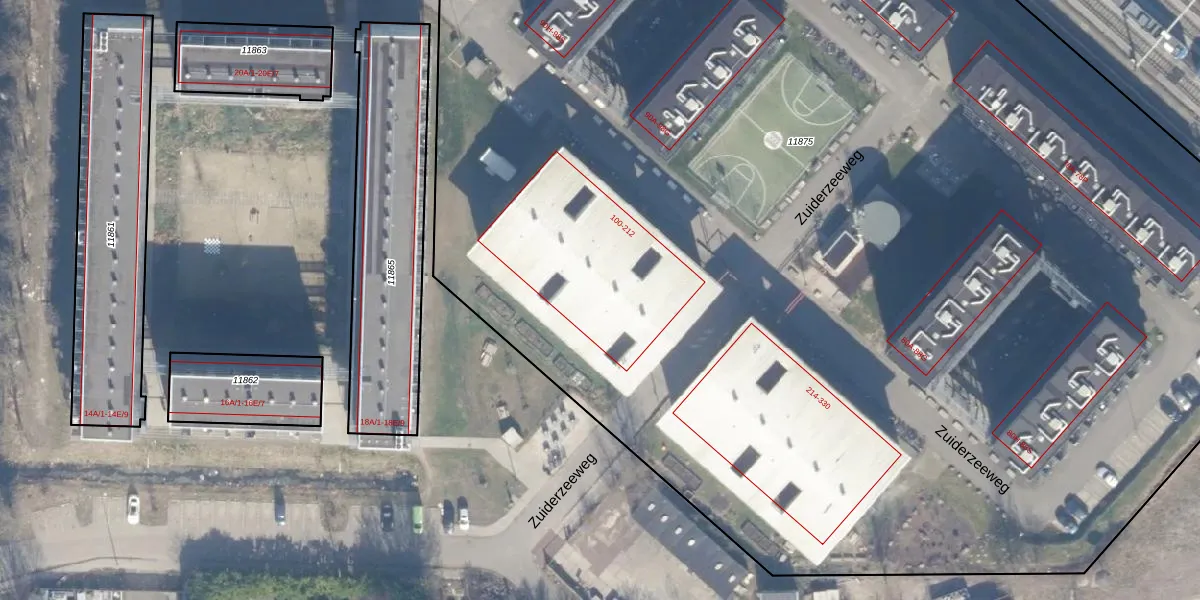 Het perceel waarop Zuiderzeeweg 104 staat heeft een oppervlakte van 1,5 ha. Dit is een zeer groot perceel. De perceeloppervlakte wordt geregistreerd door het Kadaster. Gedetailleerde informatie over de maten van dit perceel kunt u vinden in het rapport Kadastrale kaart met maatvoering van Zuiderzeeweg 104.