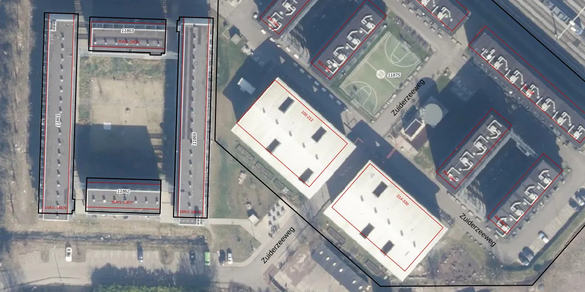 Het perceel waarop Zuiderzeeweg 184 staat heeft een oppervlakte van 1,5 ha. Dit is een zeer groot perceel. De perceeloppervlakte wordt geregistreerd door het Kadaster. Gedetailleerde informatie over de maten van dit perceel kunt u vinden in het rapport Kadastrale kaart met maatvoering van Zuiderzeeweg 184.