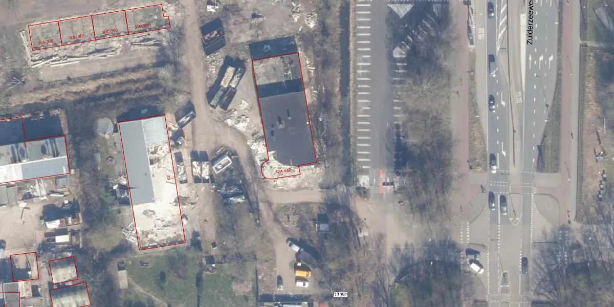 Het perceel waarop Zuiderzeeweg 42-A staat heeft een oppervlakte van 20,4 ha. Dit is een zeer groot perceel. De perceeloppervlakte wordt geregistreerd door het Kadaster. Gedetailleerde informatie over de maten van dit perceel kunt u vinden in het rapport Kadastrale kaart met maatvoering van Zuiderzeeweg 42-A.