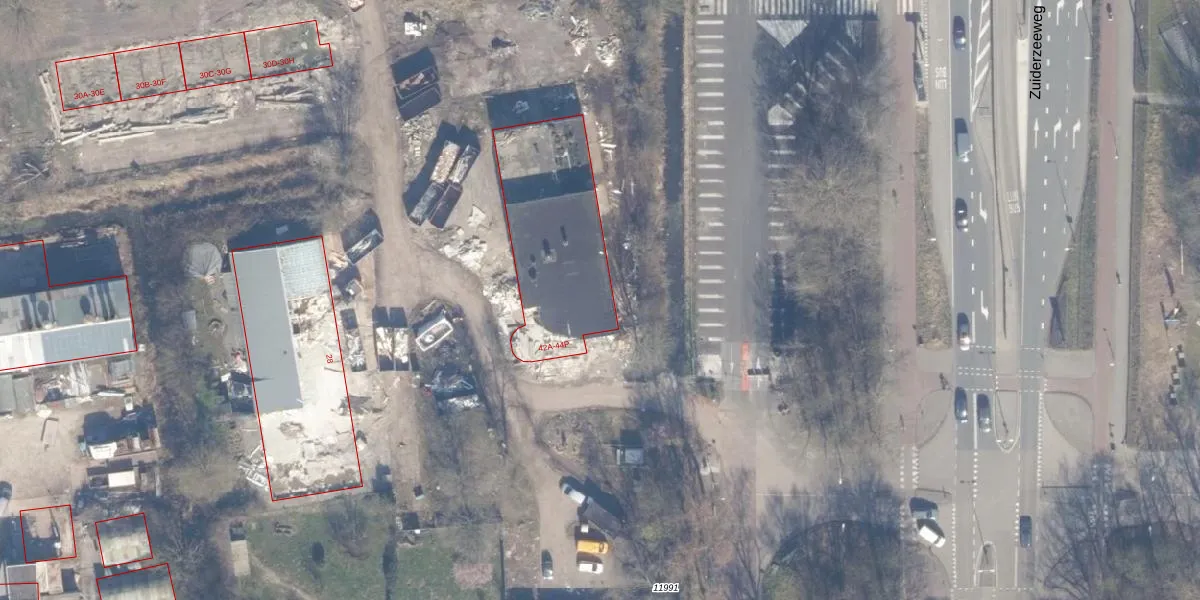 Het perceel waarop Zuiderzeeweg 42-B staat heeft een oppervlakte van 20,4 ha. Dit is een zeer groot perceel. De perceeloppervlakte wordt geregistreerd door het Kadaster. Gedetailleerde informatie over de maten van dit perceel kunt u vinden in het rapport Kadastrale kaart met maatvoering van Zuiderzeeweg 42-B.
