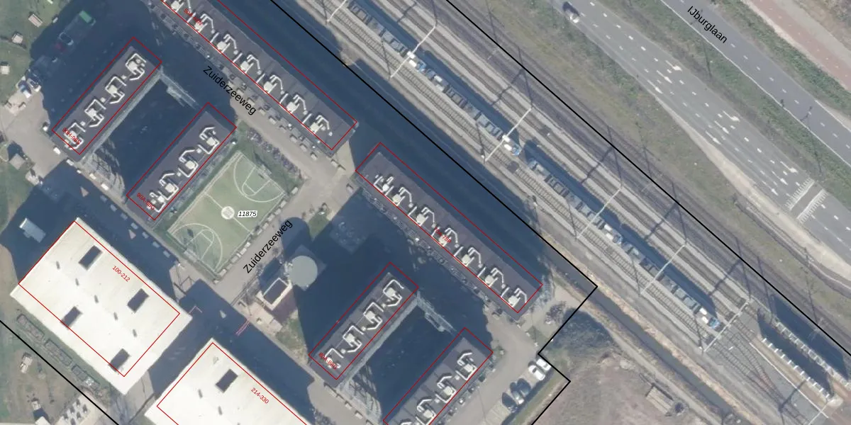 Het perceel waarop Zuiderzeeweg 74-H staat heeft een oppervlakte van 1,5 ha. Dit is een zeer groot perceel. De perceeloppervlakte wordt geregistreerd door het Kadaster. Gedetailleerde informatie over de maten van dit perceel kunt u vinden in het rapport Kadastrale kaart met maatvoering van Zuiderzeeweg 74-H.