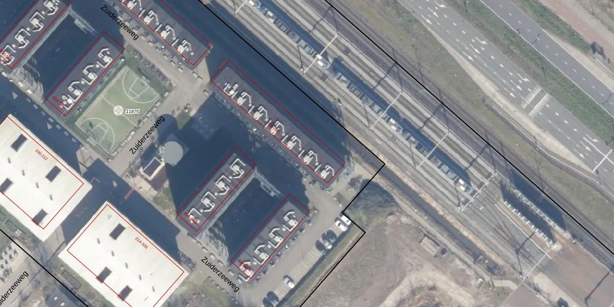 Het perceel waarop Zuiderzeeweg 76-K staat heeft een oppervlakte van 1,5 ha. Dit is een zeer groot perceel. De perceeloppervlakte wordt geregistreerd door het Kadaster. Gedetailleerde informatie over de maten van dit perceel kunt u vinden in het rapport Kadastrale kaart met maatvoering van Zuiderzeeweg 76-K.