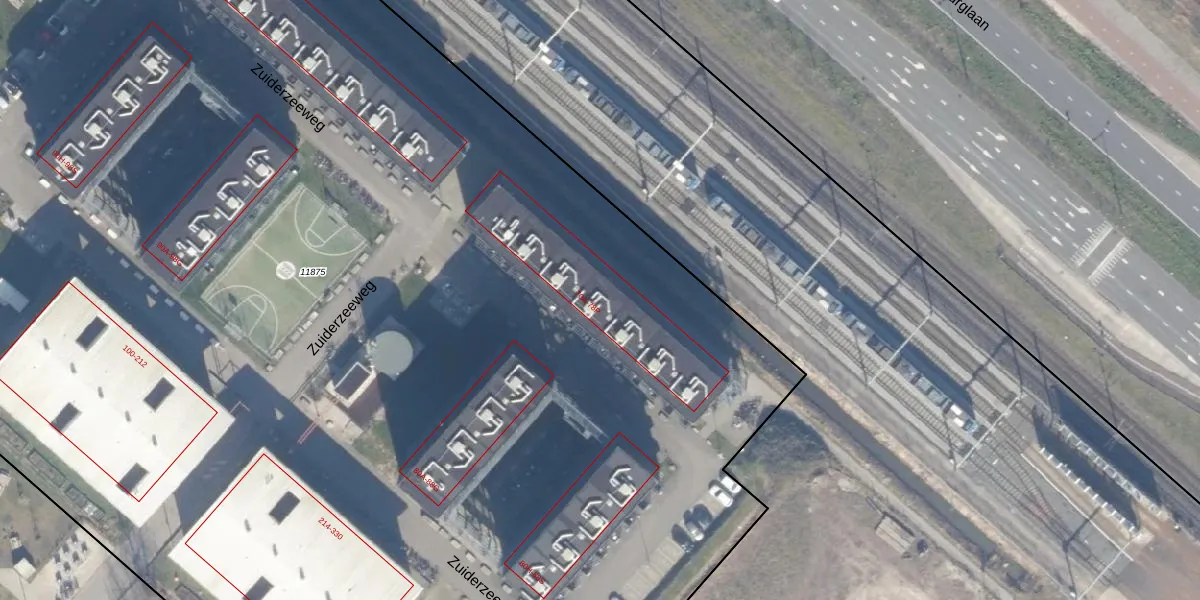 Het perceel waarop Zuiderzeeweg 78-A staat heeft een oppervlakte van 1,5 ha. Dit is een zeer groot perceel. De perceeloppervlakte wordt geregistreerd door het Kadaster. Gedetailleerde informatie over de maten van dit perceel kunt u vinden in het rapport Kadastrale kaart met maatvoering van Zuiderzeeweg 78-A.