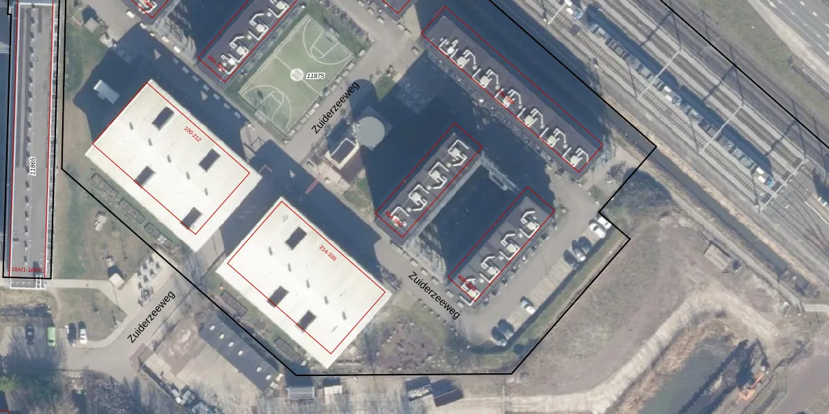 Het perceel waarop Zuiderzeeweg 80-G staat heeft een oppervlakte van 1,5 ha. Dit is een zeer groot perceel. De perceeloppervlakte wordt geregistreerd door het Kadaster. Gedetailleerde informatie over de maten van dit perceel kunt u vinden in het rapport Kadastrale kaart met maatvoering van Zuiderzeeweg 80-G.