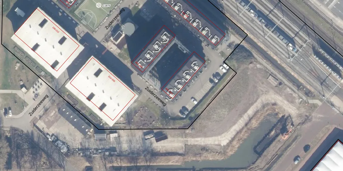 Het perceel waarop Zuiderzeeweg 80-K staat heeft een oppervlakte van 1,5 ha. Dit is een zeer groot perceel. De perceeloppervlakte wordt geregistreerd door het Kadaster. Gedetailleerde informatie over de maten van dit perceel kunt u vinden in het rapport Kadastrale kaart met maatvoering van Zuiderzeeweg 80-K.