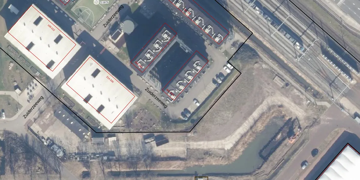 Het perceel waarop Zuiderzeeweg 80-S staat heeft een oppervlakte van 1,5 ha. Dit is een zeer groot perceel. De perceeloppervlakte wordt geregistreerd door het Kadaster. Gedetailleerde informatie over de maten van dit perceel kunt u vinden in het rapport Kadastrale kaart met maatvoering van Zuiderzeeweg 80-S.