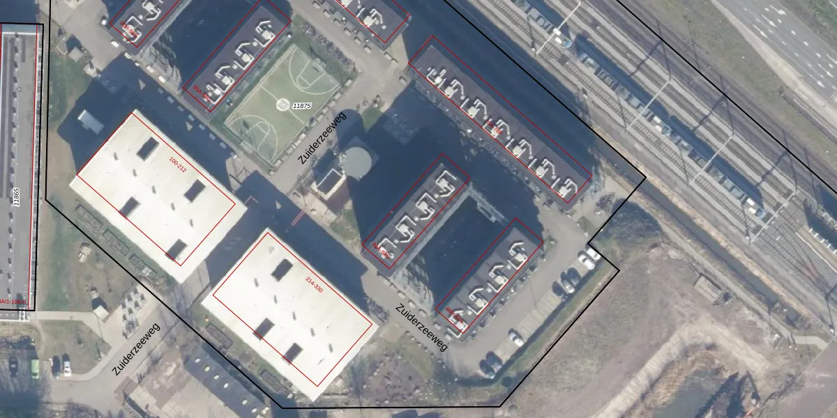 Het perceel waarop Zuiderzeeweg 82-C staat heeft een oppervlakte van 1,5 ha. Dit is een zeer groot perceel. De perceeloppervlakte wordt geregistreerd door het Kadaster. Gedetailleerde informatie over de maten van dit perceel kunt u vinden in het rapport Kadastrale kaart met maatvoering van Zuiderzeeweg 82-C.