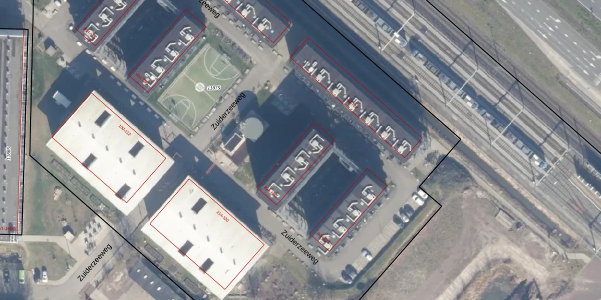 Het perceel waarop Zuiderzeeweg 84-A staat heeft een oppervlakte van 1,5 ha. Dit is een zeer groot perceel. De perceeloppervlakte wordt geregistreerd door het Kadaster. Gedetailleerde informatie over de maten van dit perceel kunt u vinden in het rapport Kadastrale kaart met maatvoering van Zuiderzeeweg 84-A.