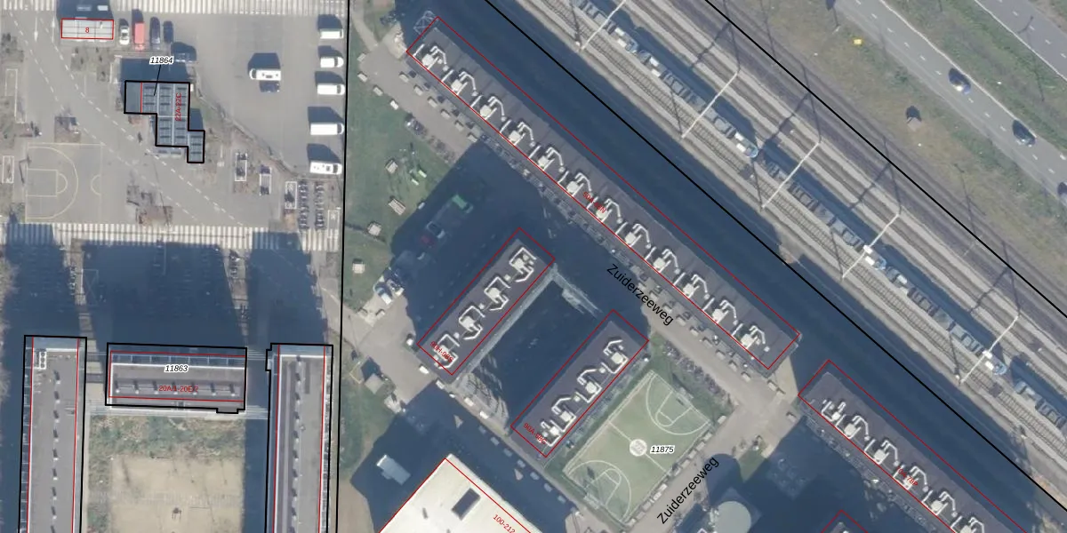 Het perceel waarop Zuiderzeeweg 96-S staat heeft een oppervlakte van 1,5 ha. Dit is een zeer groot perceel. De perceeloppervlakte wordt geregistreerd door het Kadaster. Gedetailleerde informatie over de maten van dit perceel kunt u vinden in het rapport Kadastrale kaart met maatvoering van Zuiderzeeweg 96-S.