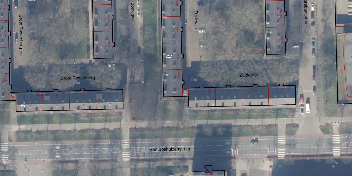 Het perceel waarop Zuidewijn 16-3 staat heeft een oppervlakte van 1361 m². Dit is een zeer groot perceel. De perceeloppervlakte wordt geregistreerd door het Kadaster. Gedetailleerde informatie over de maten van dit perceel kunt u vinden in het rapport Kadastrale kaart met maatvoering van Zuidewijn 16-3.