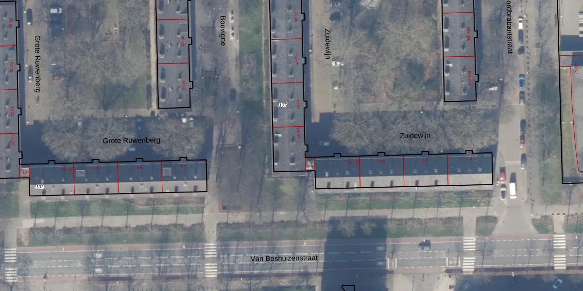 Het perceel waarop Zuidewijn 17-3 staat heeft een oppervlakte van 1361 m². Dit is een zeer groot perceel. De perceeloppervlakte wordt geregistreerd door het Kadaster. Gedetailleerde informatie over de maten van dit perceel kunt u vinden in het rapport Kadastrale kaart met maatvoering van Zuidewijn 17-3.