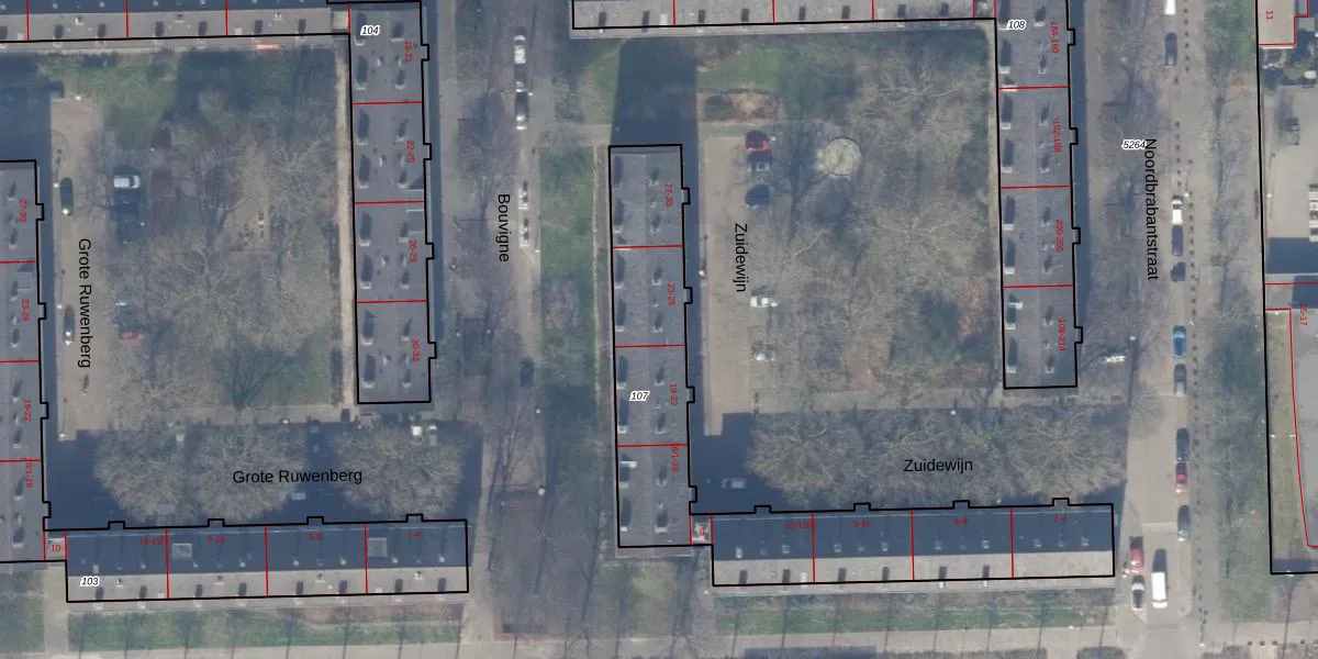 Het perceel waarop Zuidewijn 24-3 staat heeft een oppervlakte van 1361 m². Dit is een zeer groot perceel. De perceeloppervlakte wordt geregistreerd door het Kadaster. Gedetailleerde informatie over de maten van dit perceel kunt u vinden in het rapport Kadastrale kaart met maatvoering van Zuidewijn 24-3.