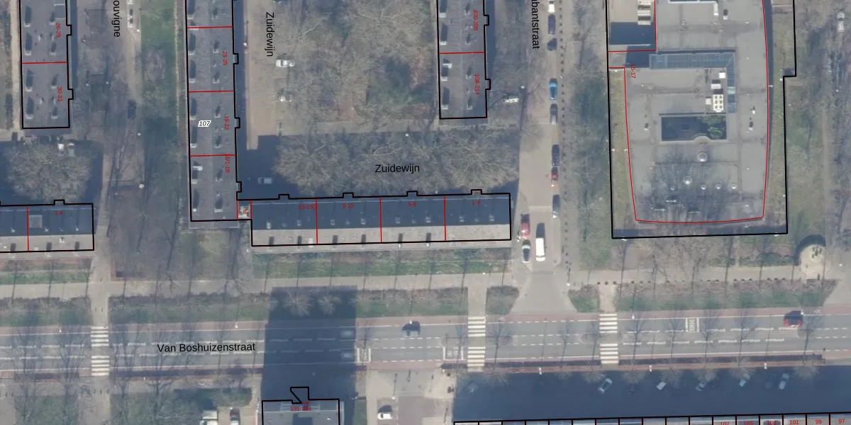 Het perceel waarop Zuidewijn 6-3 staat heeft een oppervlakte van 1361 m². Dit is een zeer groot perceel. De perceeloppervlakte wordt geregistreerd door het Kadaster. Gedetailleerde informatie over de maten van dit perceel kunt u vinden in het rapport Kadastrale kaart met maatvoering van Zuidewijn 6-3.