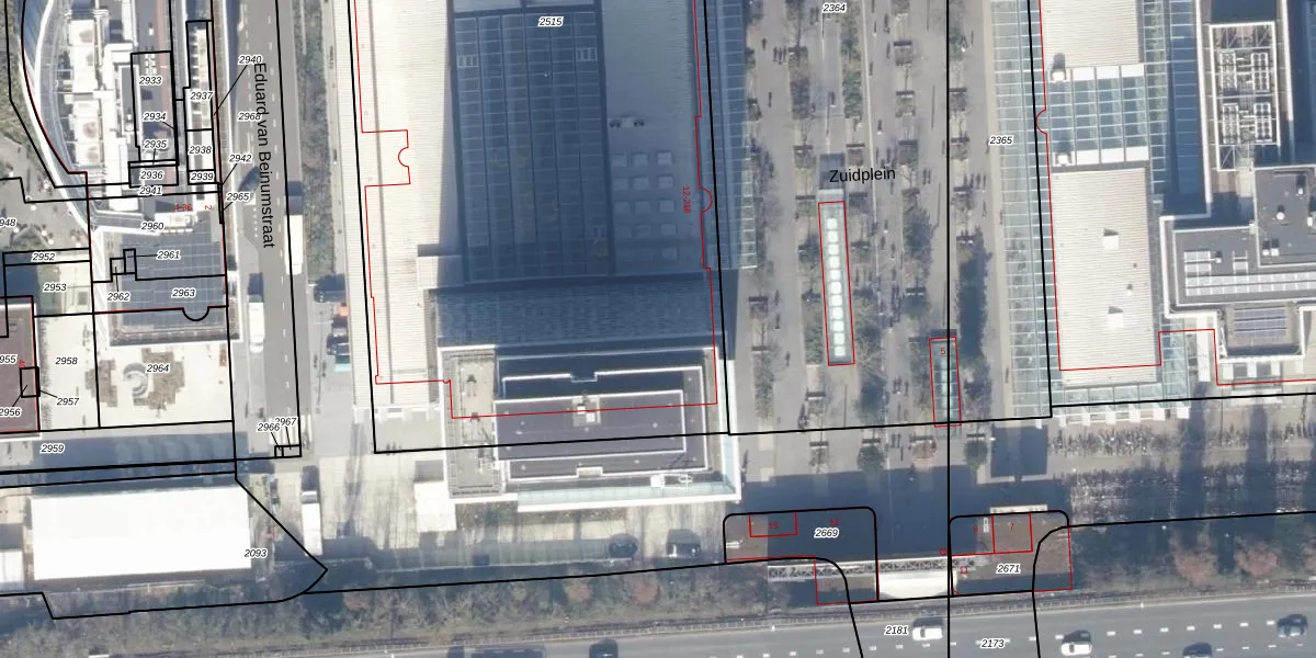 Het perceel waarop Zuidplein 138 staat heeft een oppervlakte van 5300 m². Dit is een zeer groot perceel. De perceeloppervlakte wordt geregistreerd door het Kadaster. Gedetailleerde informatie over de maten van dit perceel kunt u vinden in het rapport Kadastrale kaart met maatvoering van Zuidplein 138.