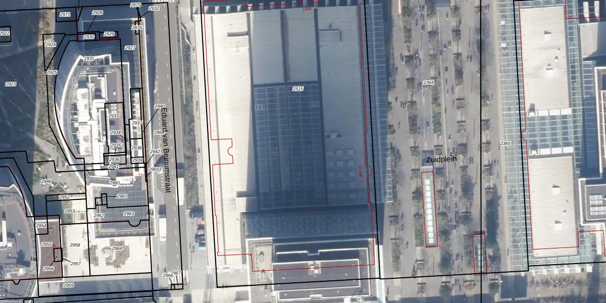 Het perceel waarop Zuidplein 18 staat heeft een oppervlakte van 5300 m². Dit is een zeer groot perceel. De perceeloppervlakte wordt geregistreerd door het Kadaster. Gedetailleerde informatie over de maten van dit perceel kunt u vinden in het rapport Kadastrale kaart met maatvoering van Zuidplein 18.