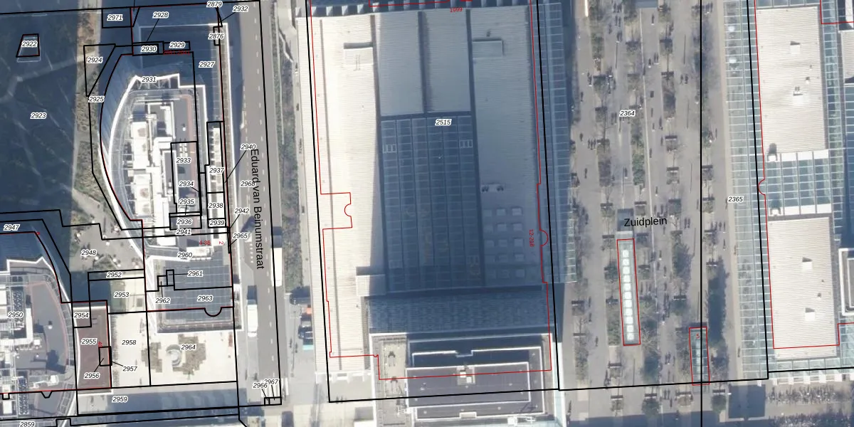Het perceel waarop Zuidplein 20 staat heeft een oppervlakte van 5300 m². Dit is een zeer groot perceel. De perceeloppervlakte wordt geregistreerd door het Kadaster. Gedetailleerde informatie over de maten van dit perceel kunt u vinden in het rapport Kadastrale kaart met maatvoering van Zuidplein 20.
