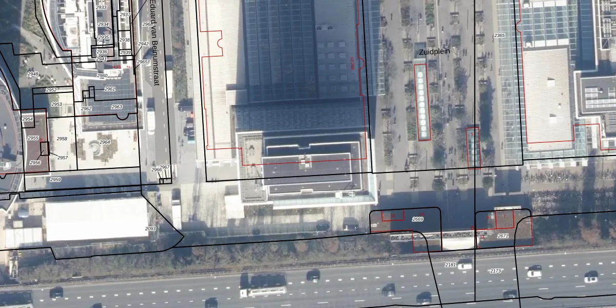 Het perceel waarop Zuidplein 216 staat heeft een oppervlakte van 5300 m². Dit is een zeer groot perceel. De perceeloppervlakte wordt geregistreerd door het Kadaster. Gedetailleerde informatie over de maten van dit perceel kunt u vinden in het rapport Kadastrale kaart met maatvoering van Zuidplein 216.