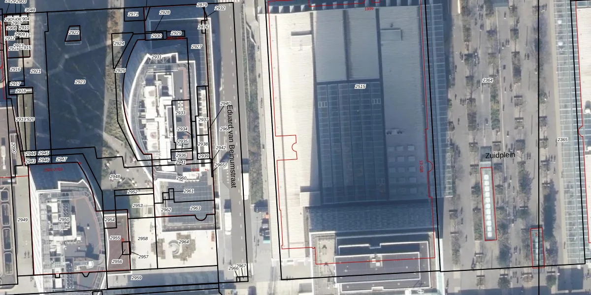 Het perceel waarop Zuidplein 26 staat heeft een oppervlakte van 5300 m². Dit is een zeer groot perceel. De perceeloppervlakte wordt geregistreerd door het Kadaster. Gedetailleerde informatie over de maten van dit perceel kunt u vinden in het rapport Kadastrale kaart met maatvoering van Zuidplein 26.