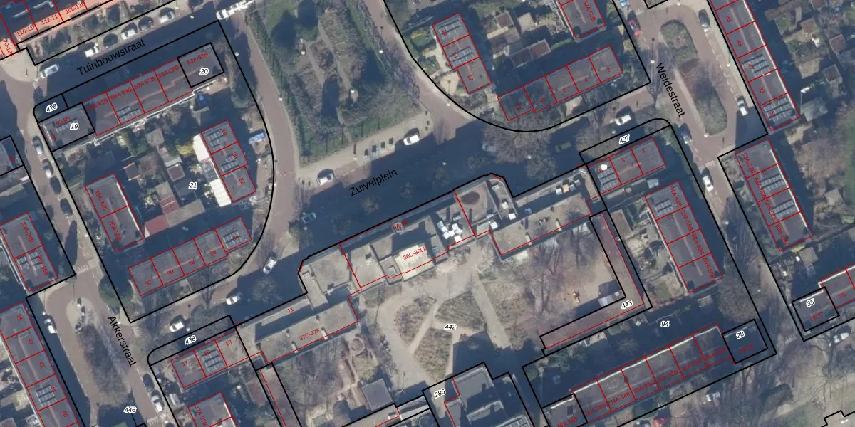 Het perceel waarop Zuivelplein 9-A staat heeft een oppervlakte van 3216 m². Dit is een zeer groot perceel. De perceeloppervlakte wordt geregistreerd door het Kadaster. Gedetailleerde informatie over de maten van dit perceel kunt u vinden in het rapport Kadastrale kaart met maatvoering van Zuivelplein 9-A.