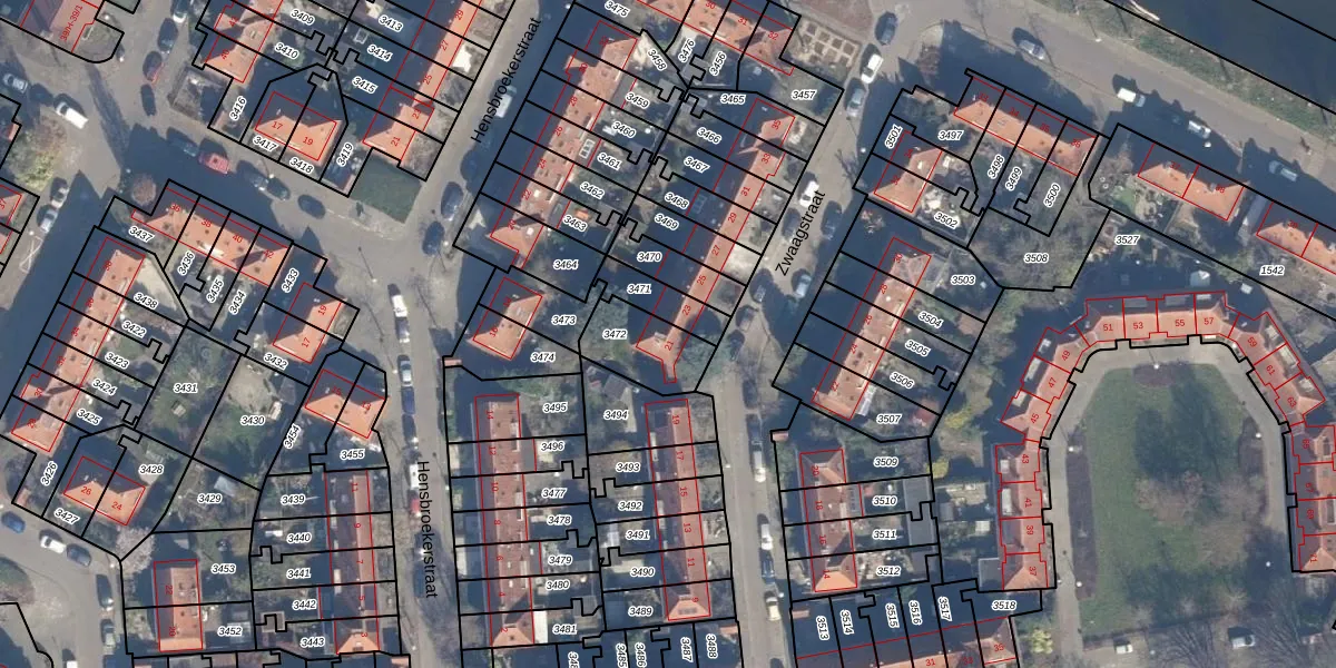 Gebruik de zoekbalk of klik op een perceel voor informatie over de adressen binnen dit perceel.