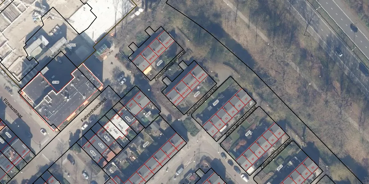 Het perceel waarop Zwaardemakerstraat 13-1 staat heeft een oppervlakte van 459 m². Dit is een groot perceel. De perceeloppervlakte wordt geregistreerd door het Kadaster. Gedetailleerde informatie over de maten van dit perceel kunt u vinden in het rapport Kadastrale kaart met maatvoering van Zwaardemakerstraat 13-1.