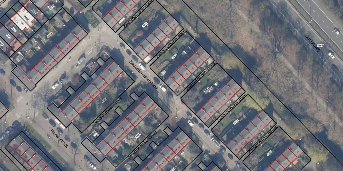Het perceel waarop Zwaardemakerstraat 41 staat heeft een oppervlakte van 701 m². Dit is een groot perceel. De perceeloppervlakte wordt geregistreerd door het Kadaster. Gedetailleerde informatie over de maten van dit perceel kunt u vinden in het rapport Kadastrale kaart met maatvoering van Zwaardemakerstraat 41.