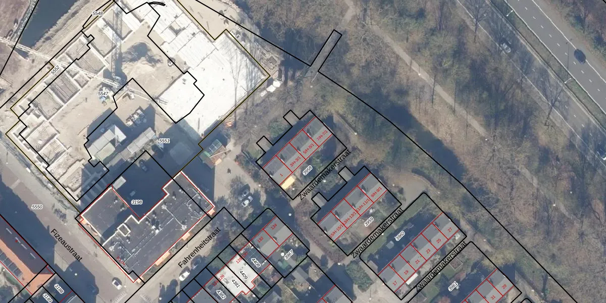 Het perceel waarop Zwaardemakerstraat 5-H staat heeft een oppervlakte van 459 m². Dit is een groot perceel. De perceeloppervlakte wordt geregistreerd door het Kadaster. Gedetailleerde informatie over de maten van dit perceel kunt u vinden in het rapport Kadastrale kaart met maatvoering van Zwaardemakerstraat 5-H.
