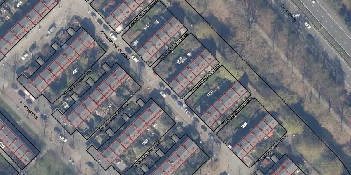 Het perceel waarop Zwaardemakerstraat 63 staat heeft een oppervlakte van 698 m². Dit is een groot perceel. De perceeloppervlakte wordt geregistreerd door het Kadaster. Gedetailleerde informatie over de maten van dit perceel kunt u vinden in het rapport Kadastrale kaart met maatvoering van Zwaardemakerstraat 63.