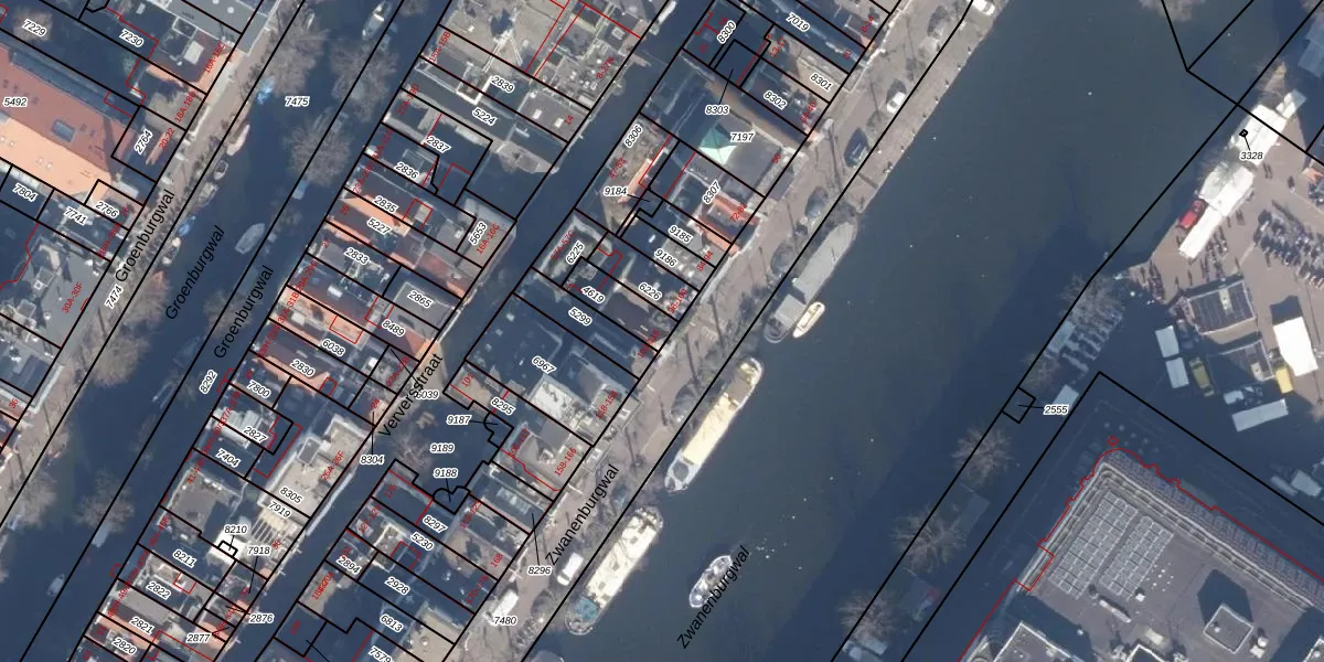 Het perceel waarop Zwanenburgwal 108 staat heeft een oppervlakte van 95 m². Dit is een klein perceel. De perceeloppervlakte wordt geregistreerd door het Kadaster. Gedetailleerde informatie over de maten van dit perceel kunt u vinden in het rapport Kadastrale kaart met maatvoering van Zwanenburgwal 108.