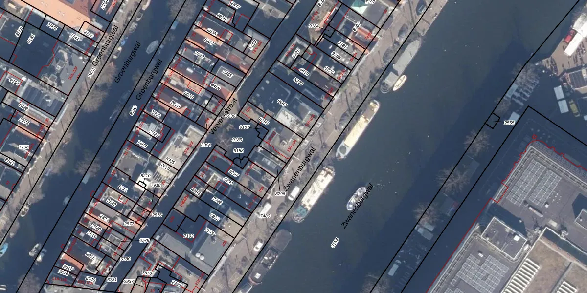 Het perceel waarop Zwanenburgwal 158 staat heeft een oppervlakte van 175 m². Dit is een middelgroot perceel. De perceeloppervlakte wordt geregistreerd door het Kadaster. Gedetailleerde informatie over de maten van dit perceel kunt u vinden in het rapport Kadastrale kaart met maatvoering van Zwanenburgwal 158.
