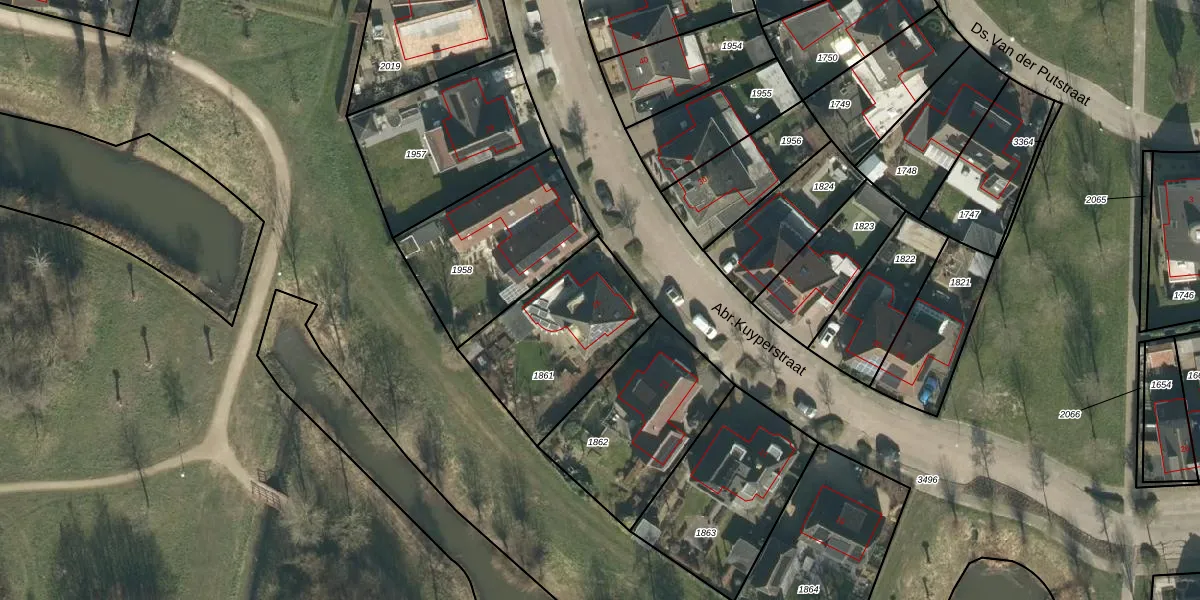 Gebruik de zoekbalk of klik op een perceel voor informatie over de adressen binnen dit perceel.