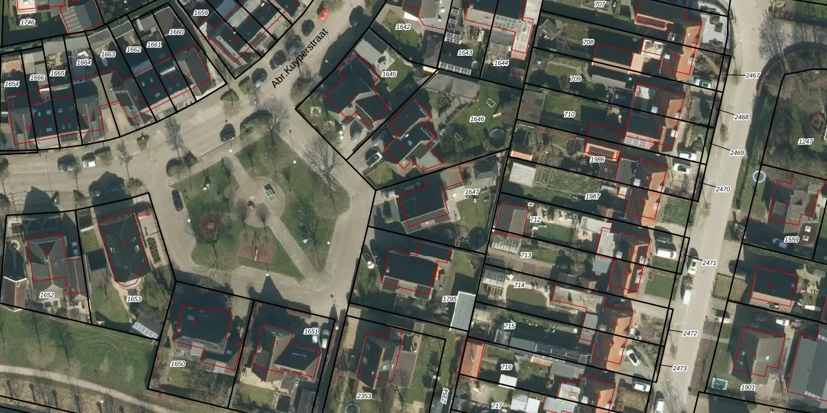 Abr.Kuyperstraat 5 is gelegen op kadastraal perceel WDC00I1647. Deze kadastrale aanduiding is uniek en wordt gebruikt door het Kadaster om eigendomsrechten en andere zakelijke rechten vast te leggen. Het perceel maakt onderdeel uit van de kadastrale gemeente Woudrichem.